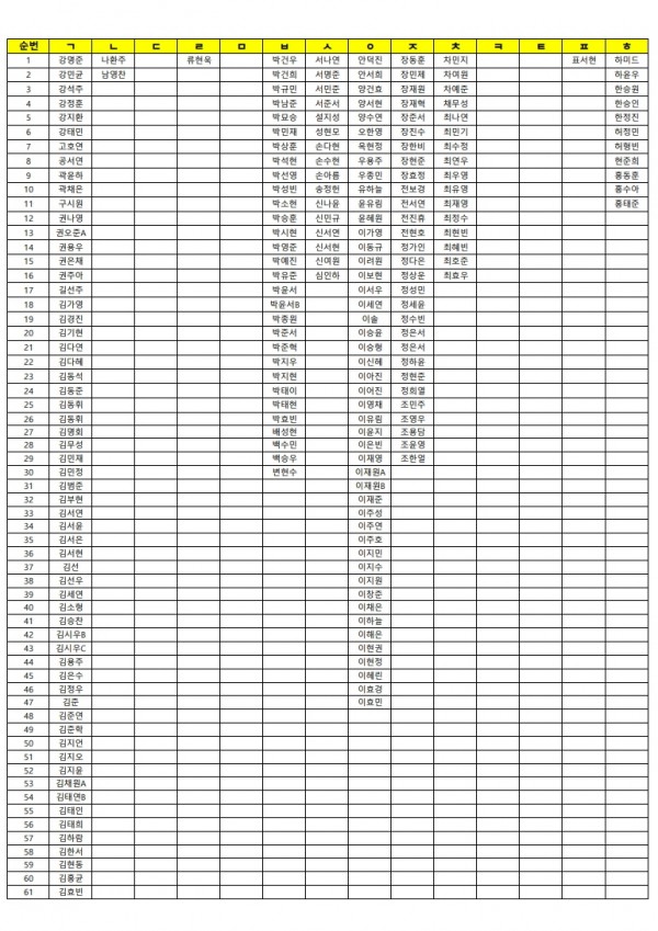 11월 2일(일) 휴일 자습 명단