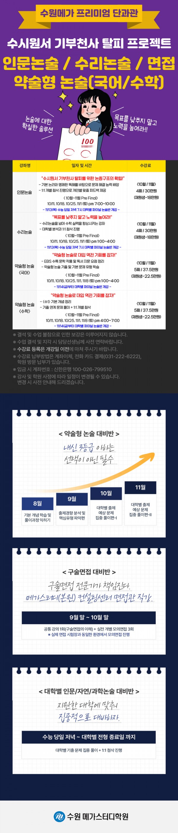 2025 10월 대학별 논술 프로그램(인문/수리/약술형 논술) 페이지 정보 작성자 최고관리자 작성일 22-11-26 11:12 조회 4,212회 댓글 0건 본문 2025 10월 대학별 논술 프로그램(인문/수리/약술형 논술)