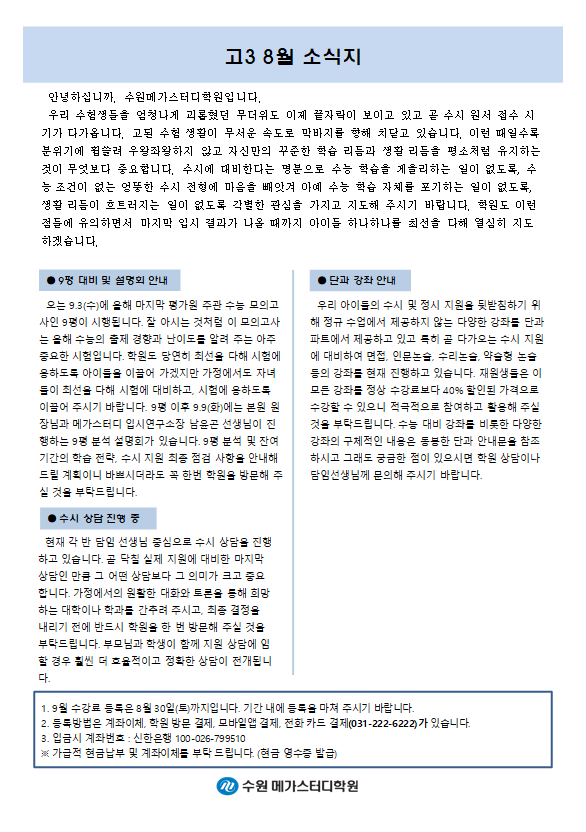 고등 [고3] 8월 가정통신문